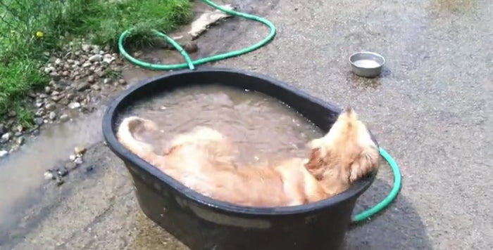 Hilarious Golden Retriever Makes The Most Of Tiny Bathtub!