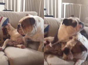Bulldog Protects Puppy Sister From Bully Brother!