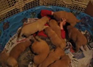 Fourteen Golden Retriever Puppies Shower Little Boy With Kisses!