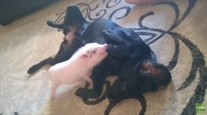 Labrador Gets A Massage From A Mini Pig!