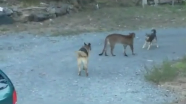 German Shepherd Teams Up With A Husky To Chase Away A Cougar!