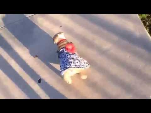 Adorable English Bulldog Pup Goes For A Nice Afternoon Walk Like A Princess!