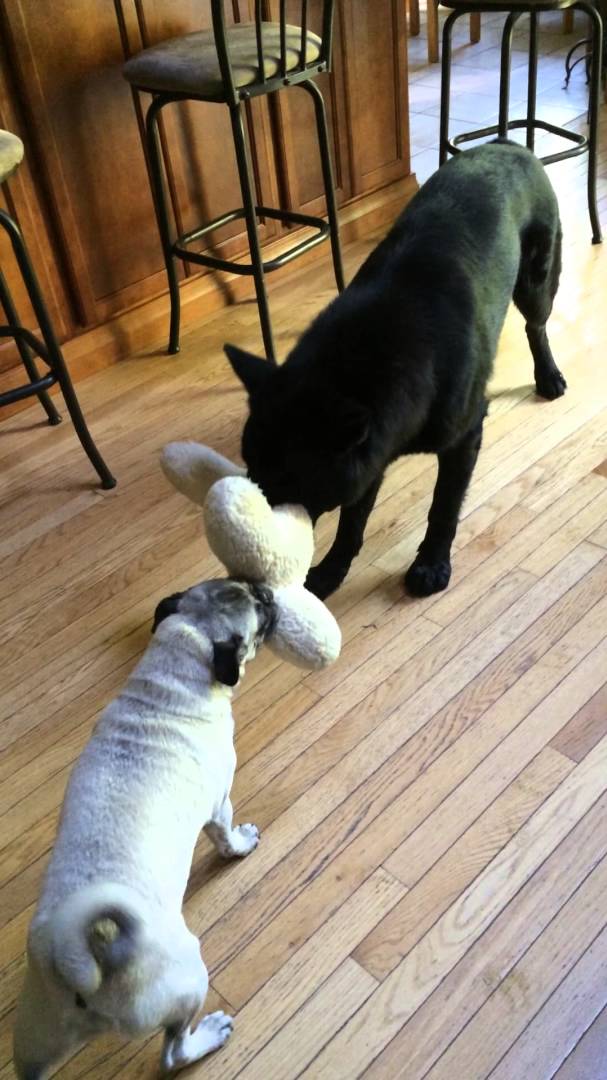 Cash The German Shepherd Gives Up Soft Toy For His Friend, Hank The Pug!