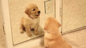 Golden Retriever Puppy Invites The Puppy In The Mirror To Play!