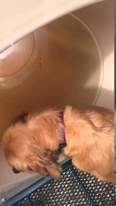 Fluffy Golden Retriever Shows Her Sister How To Play With The Slide!