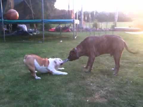 Adorable English Bulldog Plays Tug-of-War With Massive English Mastiff!