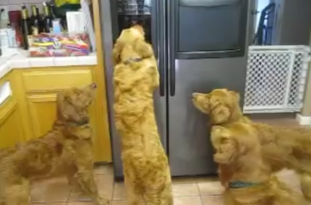 Smart Golden Retrievers Figured Out How To Use The Ice Maker!