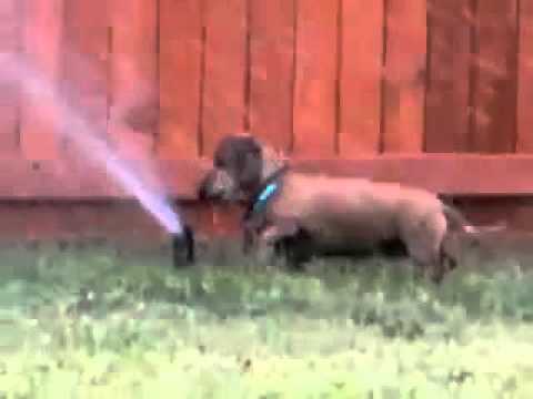Adorable Dachshund Pup Attacks A Sprinkler Head And Doesn't Give Up!