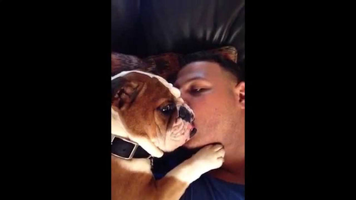 Adorable English Bulldog Wouldn't Let His Person Stop Kissing Him!