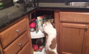 Cute Bulldog Puppy Finds Her Treats In The Grocery Cupboard!
