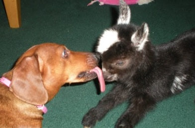 Adorable Video: Pygmy Goat Playing With A Mini Dachshund!