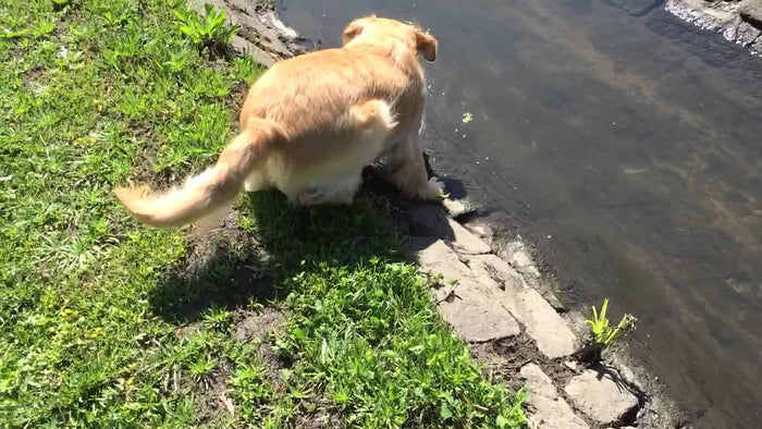 Happy The Golden Retriever Tries To Rescue A Leaf From Drowning!