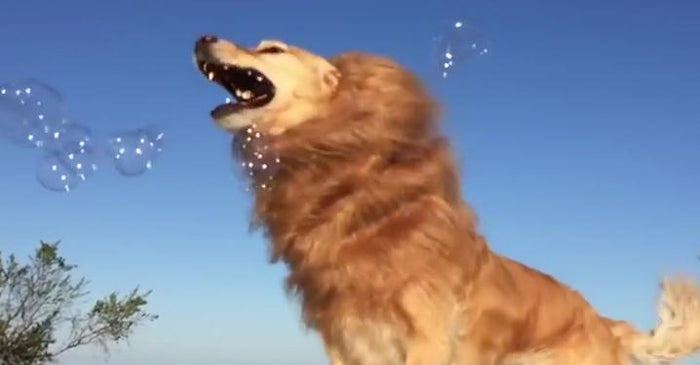 This Bubble-Chasing Lion Is A Golden Retriever!
