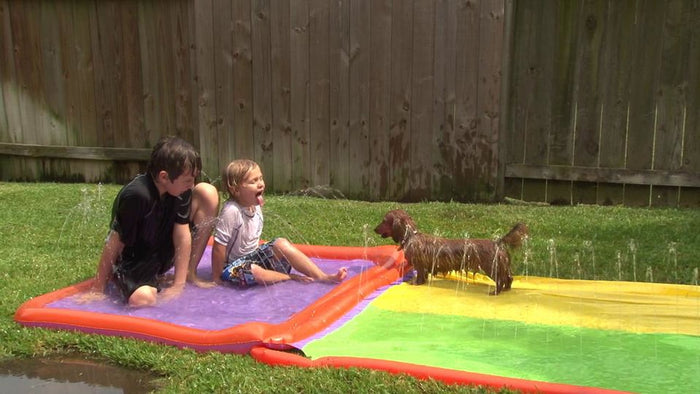 Wrigley The Adorable Dachshund Plays Slip-N-Slide In The Garden!