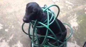 Guilty Labrador Gets Herself Tangled In Garden Hose!
