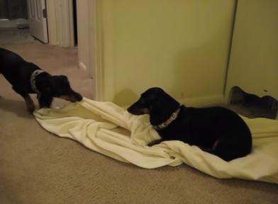 Two Adorable Dachshunds Fight Over A Big Blanket!