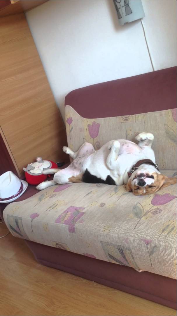 The Way This Adorable Beagle Is Sleeping Has Me Laughing! She's Dreaming Too!