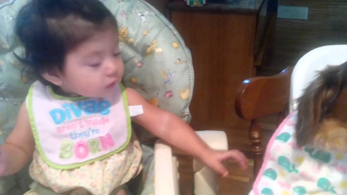 Adorable Dachshund Joins Baby Sister For Baby Food!