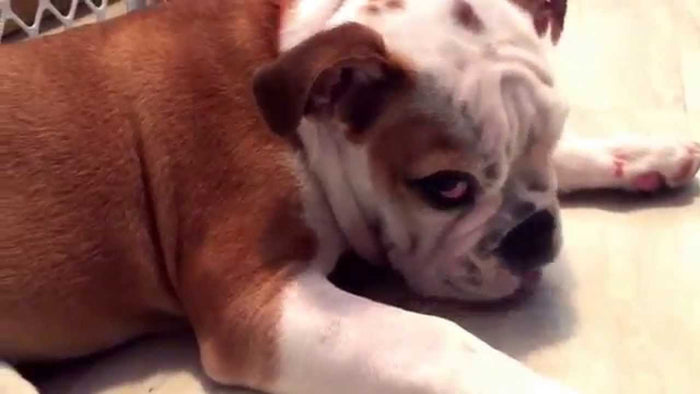 Cute And Cuddly English Bulldog Is Trying To Sleep, But Oh That Pink Tongue!
