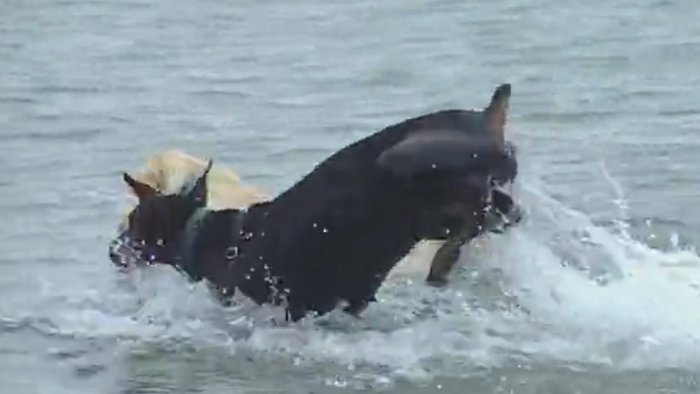 Adorable Labrador Teaches Doberman How To Swim! #ProfessionalSwimmer!