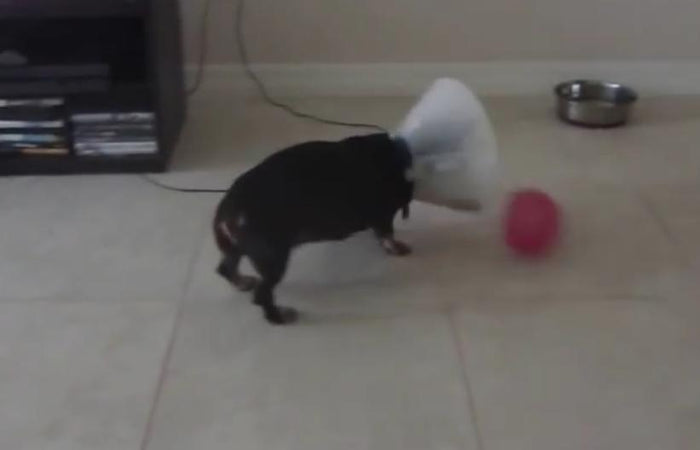 The Cone Is Not Keeping This Dachshund From Pursuing His Soccer Career!