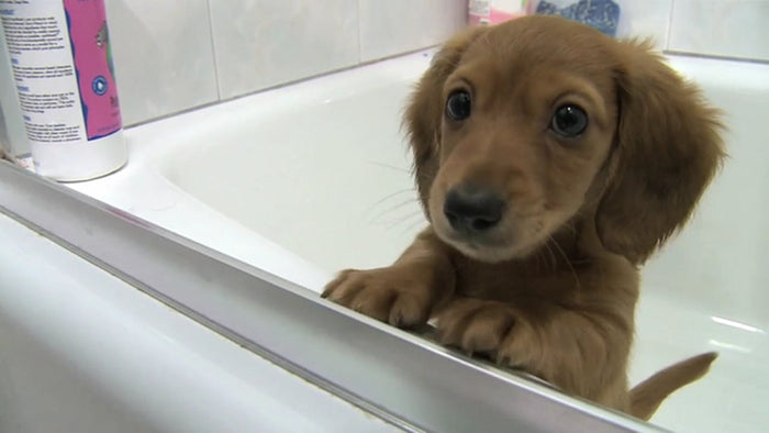 Haru The Dachshund Takes His First Bath, And It's Amazingly Cute!