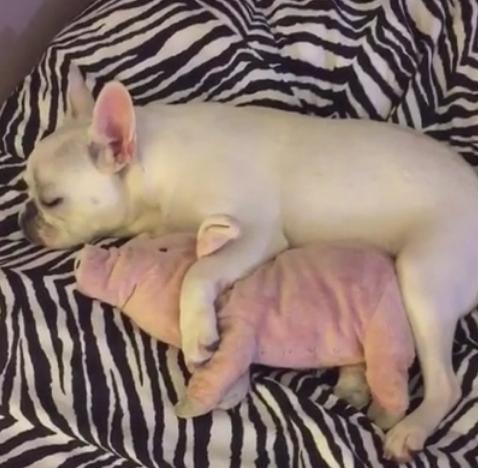 Awwww! Sweet French Bulldog Cuddles With Stuffed Animal!