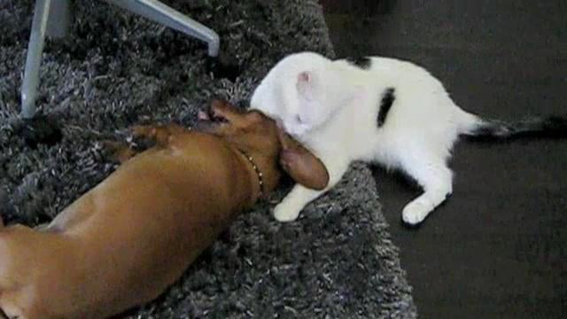 Monty The Dachshund Gets Kissed By His Friend George The Cat! #Love&Kisses!