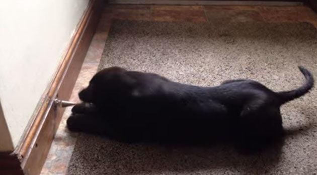 Video: Cute Black Labrador Puppy Takes On The Doorstop!