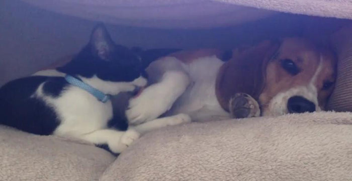 Beagle Puppy Loves Cuddling With His Cat Friend!
