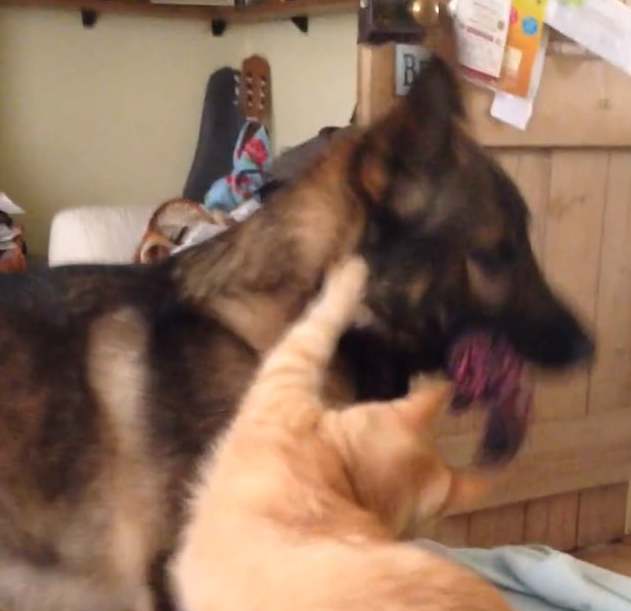 Smart German Shepherd Taunts His Buddy The Cat And Walks Away Like Nothing Happened!
