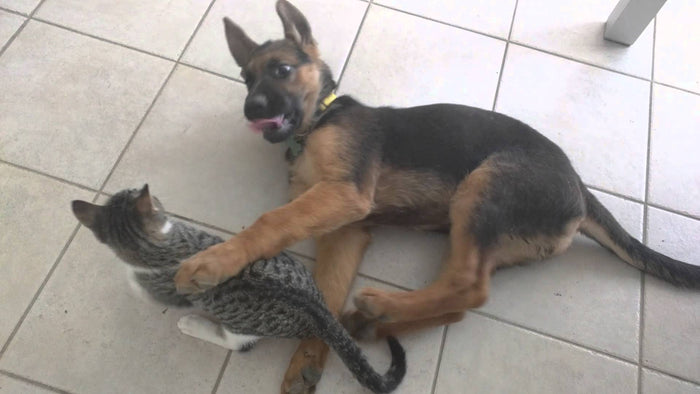 Three Month Old German Shepherd Plays With A Tiny Kitten! #Inspirational