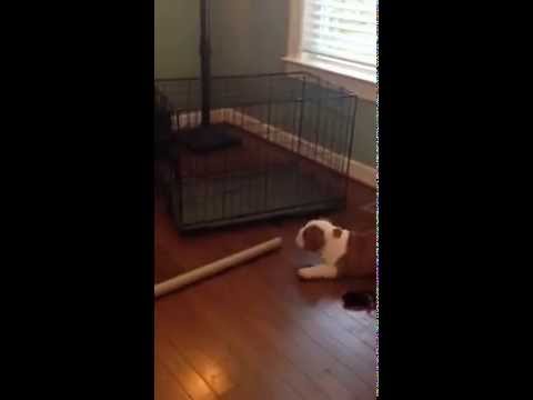 Louie The English Bulldog Barks For The First Time Thanks To This Cardboard Roll!
