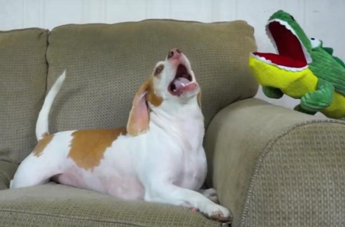 This Beagle Has Hilarious Reaction to Alligator Puppet!