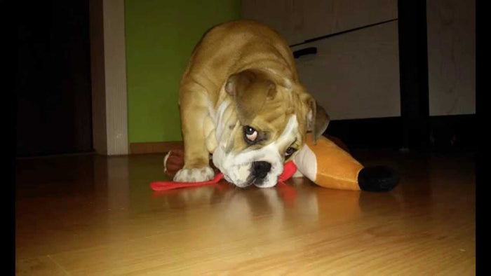 Kluska The English Bulldog Has Good Fun With Her Soft Toy!