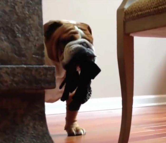 This Bulldog Wants To Steal Stuff And Hide Under The Table!