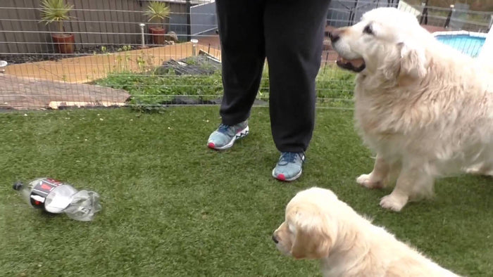 Cute Golden Retriever Puppy Plays Tug Of War With Adult Retriever's...Tail?!
