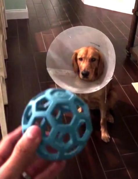 This Guy Found A Genius Way To Play Fetch With His Cone Headed Golden Retriever!