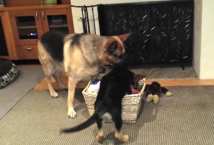 German Shepherd Puppy Is Having His First Lesson In Sharing!