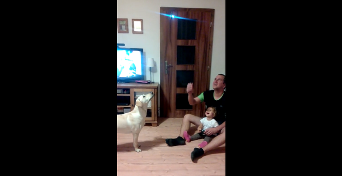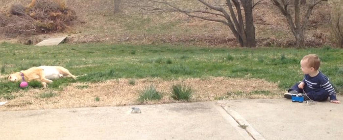 Watch How This Baby Laughs Hysterically At A Labrador Retriever Rolling Over!