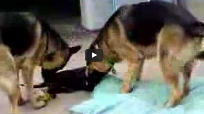 These Two German Shepherds Are Being Chased By A Little Lab Puppy!