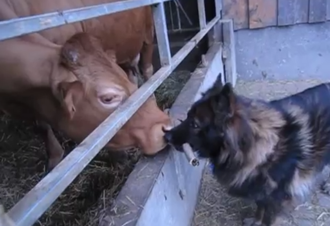Adorable German Shepherd Gets Free Shower From...A Cow?! This Is Heart Warming!