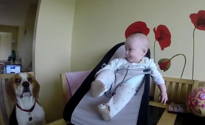 Silly Beagle Makes Baby Smile By Begging For Food!