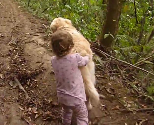 Golden Retriever Is Guiding His Little Sister Out Of The Forest!