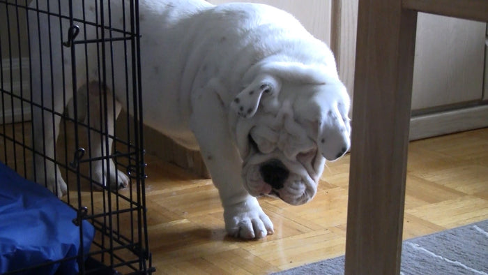 Bentley The English Bulldog Discovers Dust Bunnies! Now He Wants to Track Them Down!