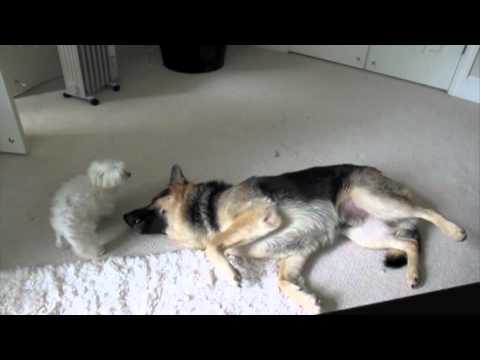 Adorable German Shepherd Competes With Maltese For LOVE!