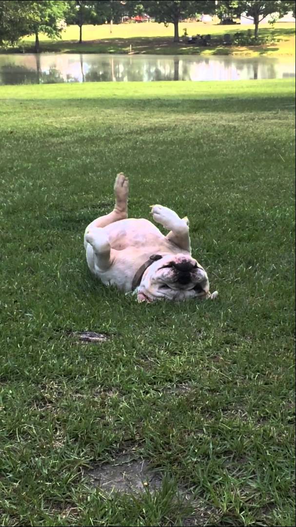 This English Bulldog Is In Love With The Green Grass! Look At Him Scratching!