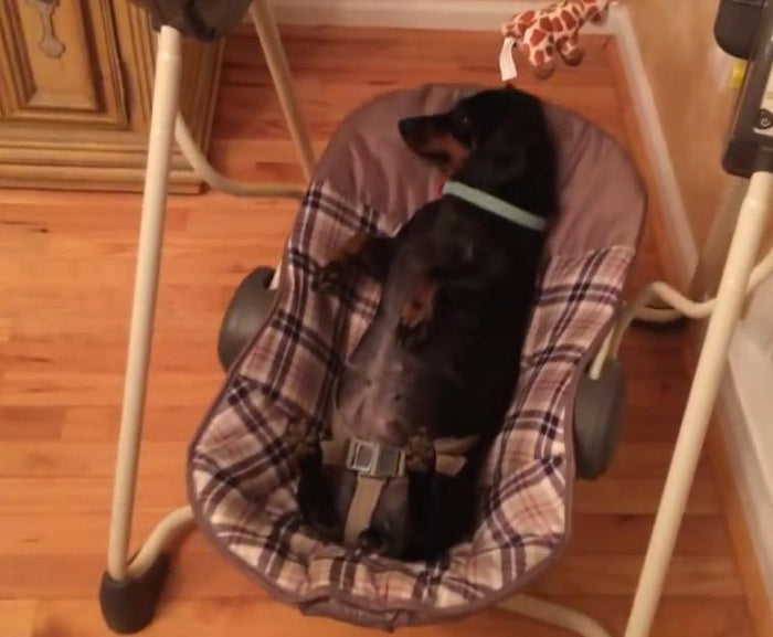 This Dachshund Relaxing In A Baby Swing Will Make Your Day!