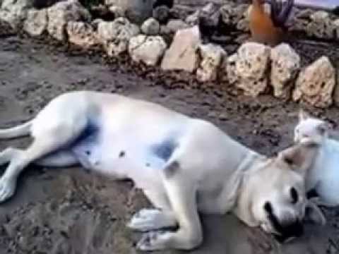 Labrador Gets Premium Quality Massage By A Cute Little Kitten! So Much Love Here!
