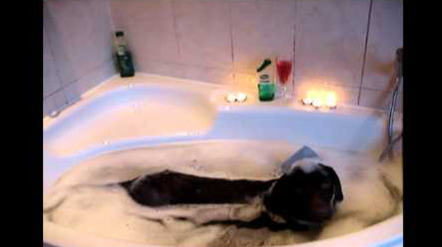 Video: Chocolate Labrador In A Radox Bath With Wine And Scented Candles!